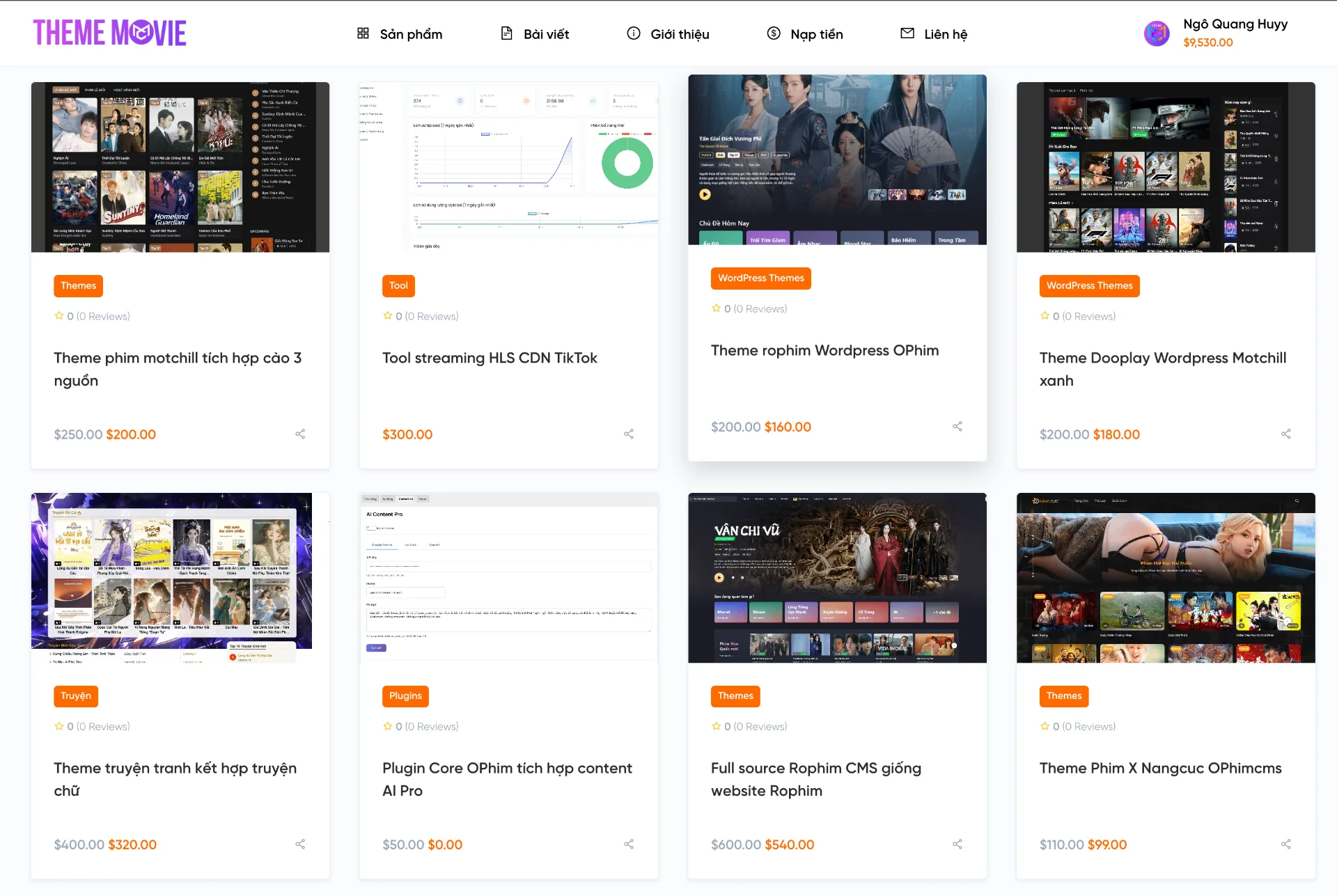 - Truy cập website: Vào thememovies.net và chọn sản phẩm (theme, plugin, tool streaming...).