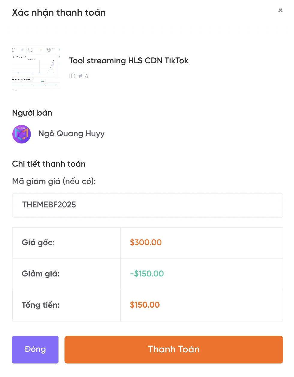 - Áp dụng mã giảm giá: Tại checkout, nhập THEMEBF2025 → Giảm 50% ngay lập tức → Thanh toán an toàn bằng USDT